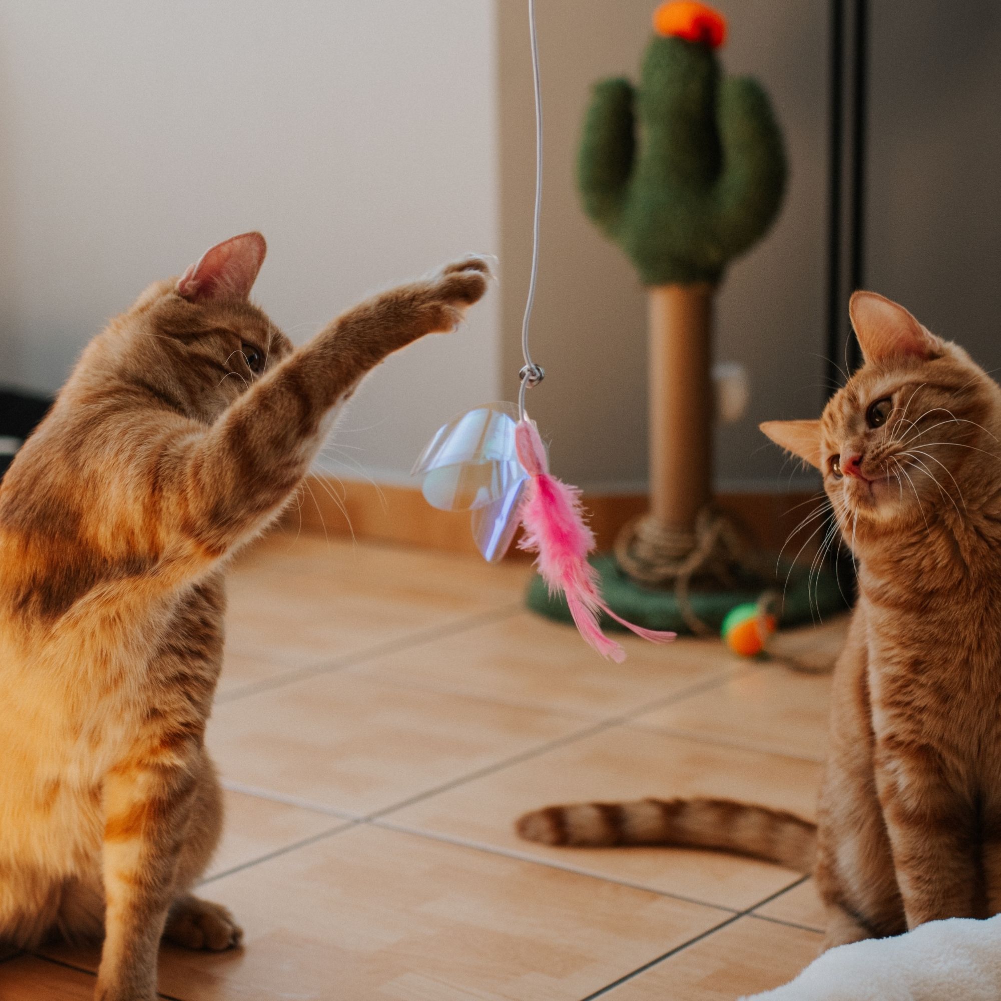 To nie jest zwykła wędka – to trigger dla instynktu drapieżnika. Migoczące skrzydła motyla + miękkie piórka = maksymalna stymulacja wzroku i ruchu. Efekt? Kot wchodzi w tryb „polowanie” w kilka sekund.