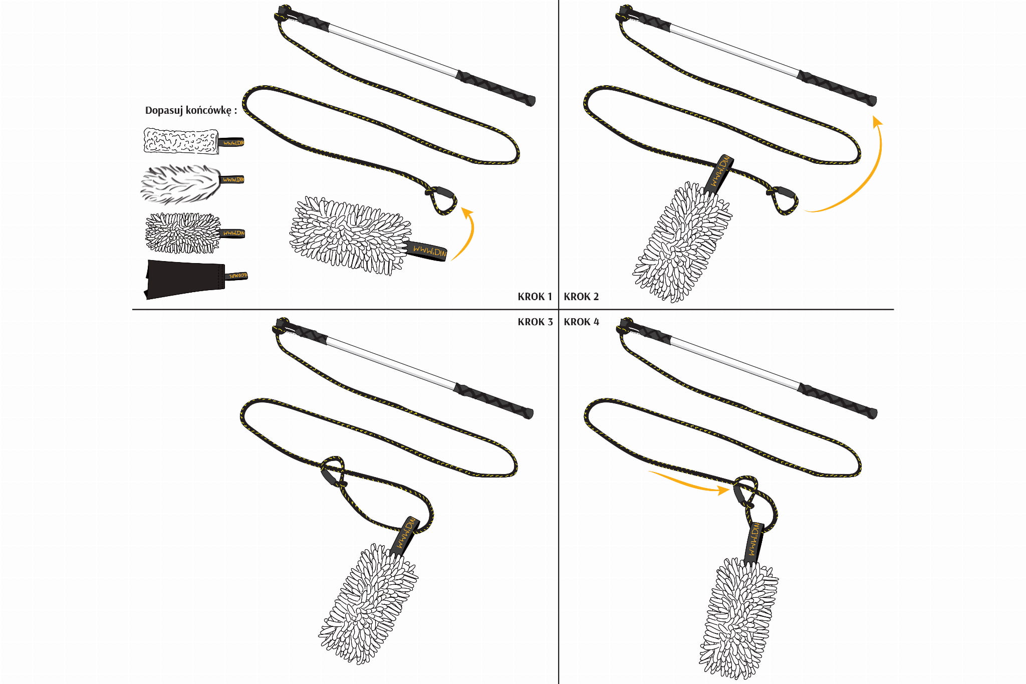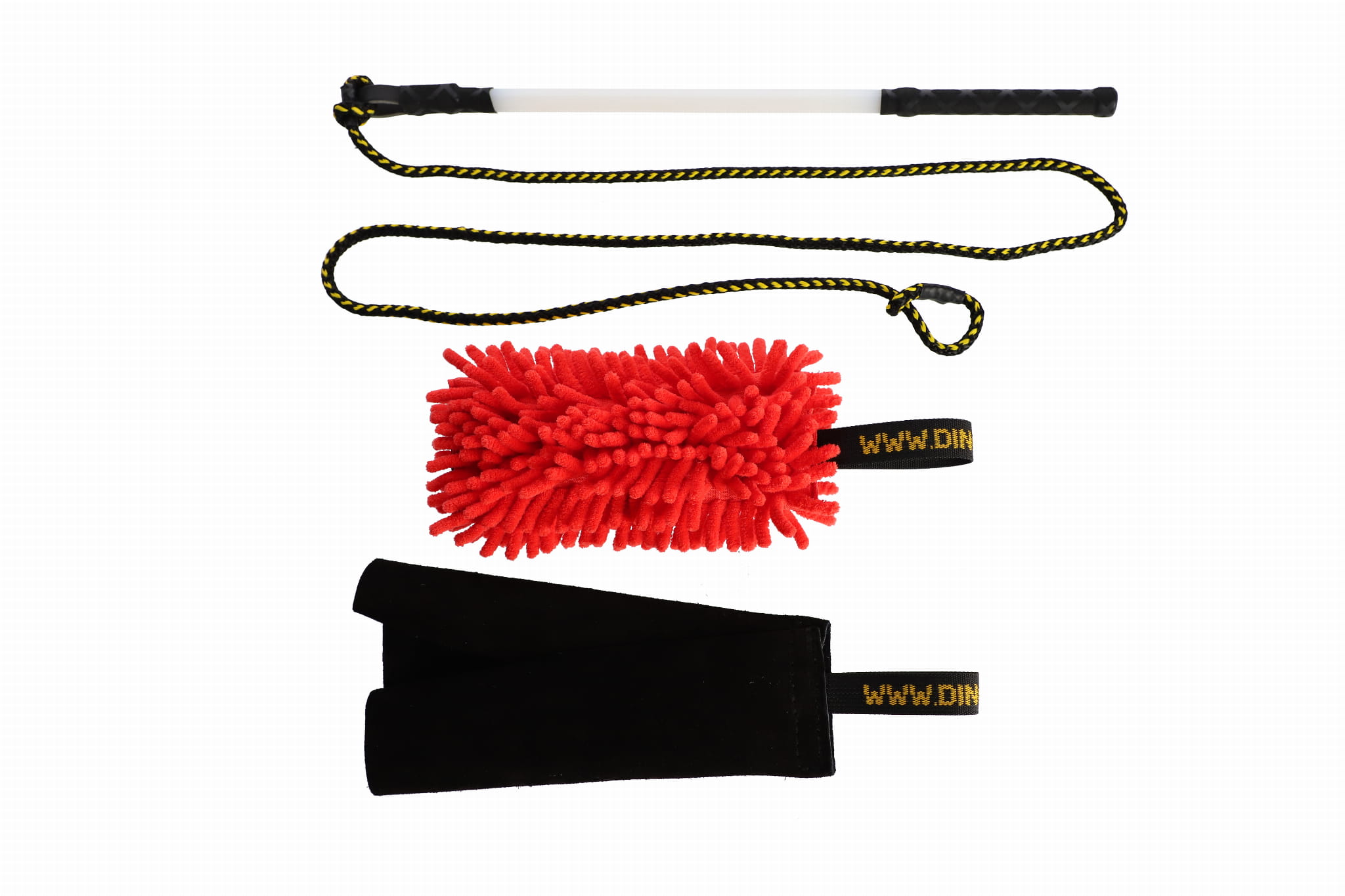 WĘDKA ZE SZNURKIEM 130 CM+WYMIENNE KOŃCÓWKI MOP CZERWONY+SZMATKA SKÓRZANA CZARNA